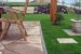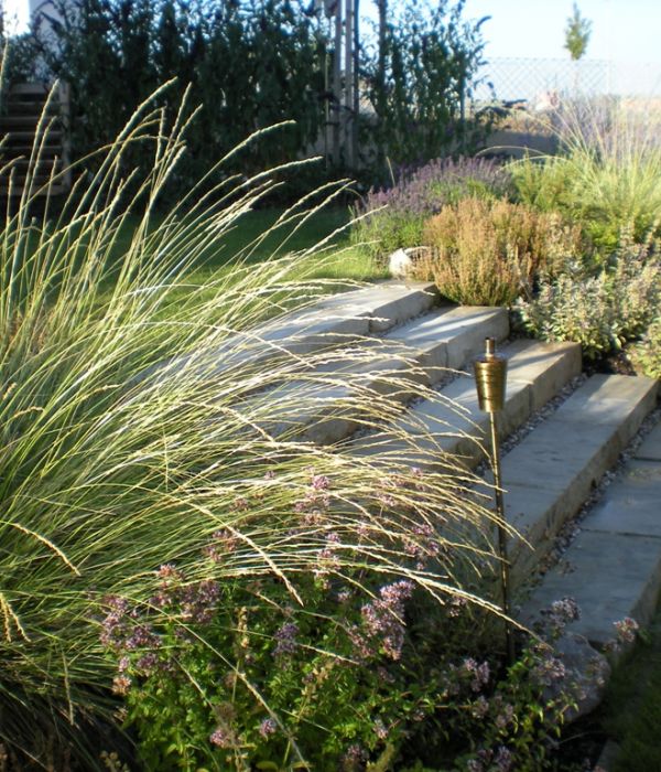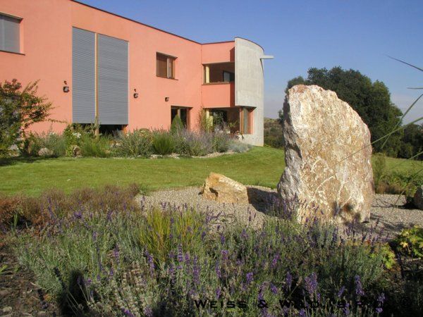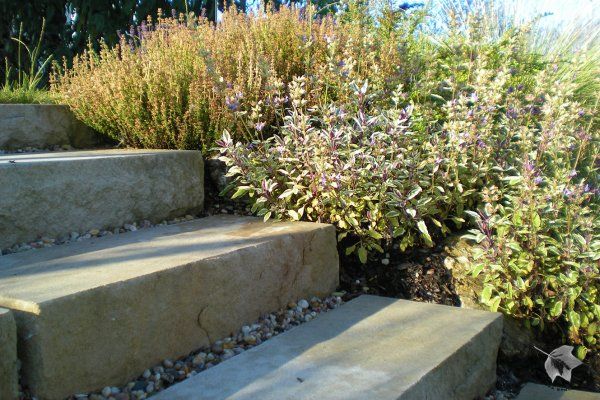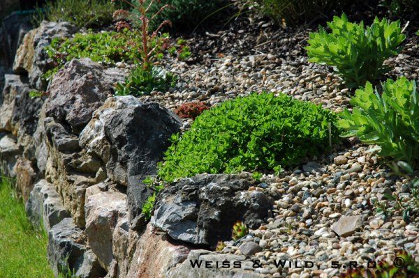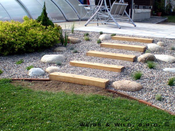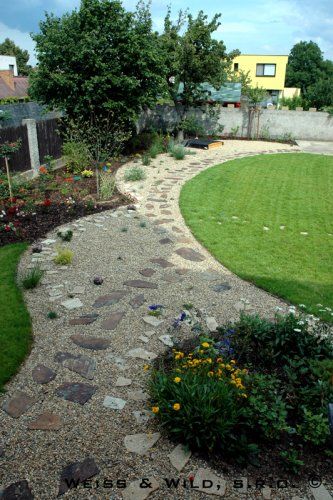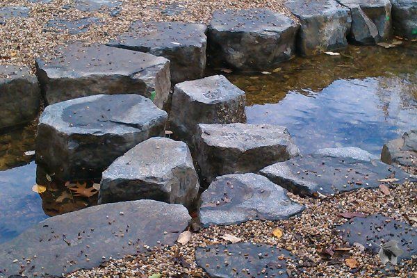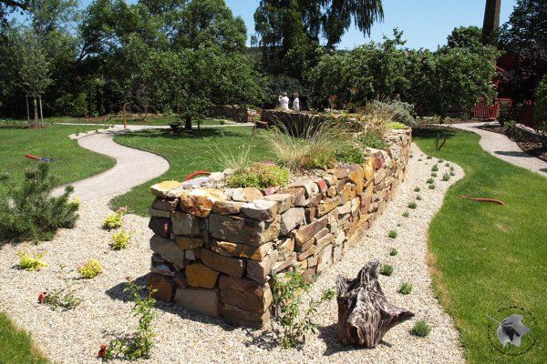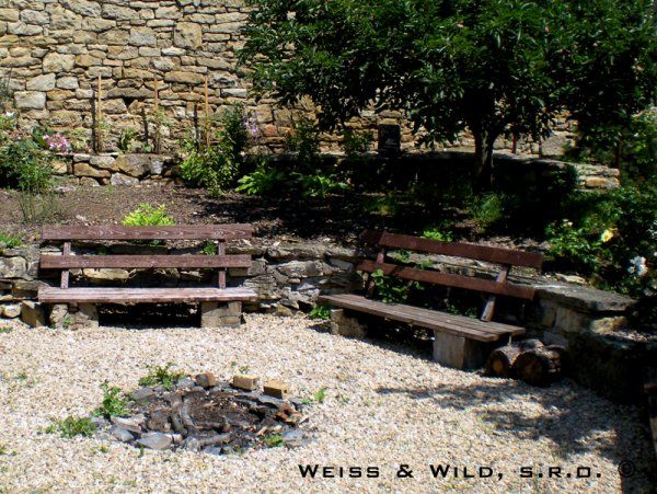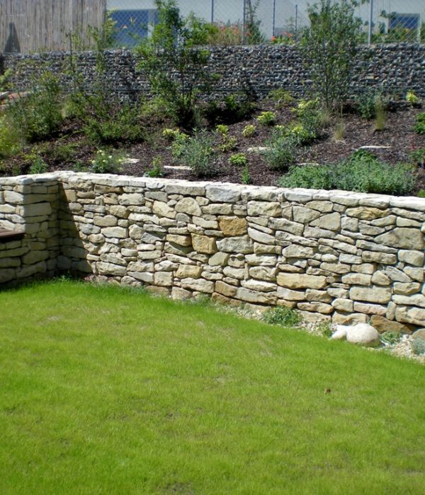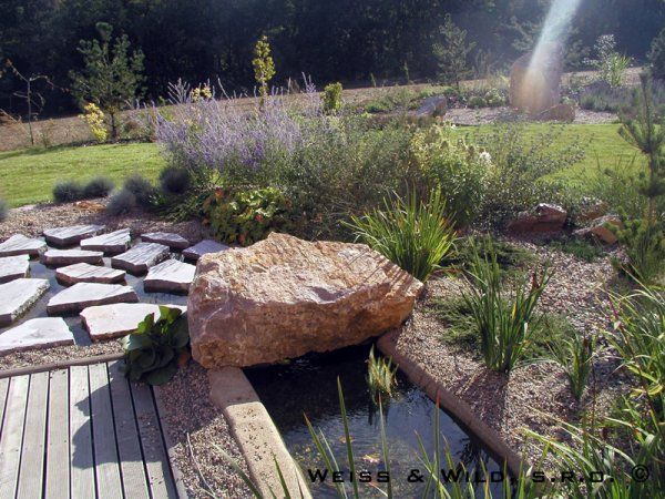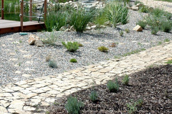 Kromě přírodního kamene používáme v zahradách i klasické kamenické výrobky jako jsou sekané žulové kostky různých velikostí, např. v podobě dělících lemů kolem jednotlivých záhonů. Kameny, které v našich realizacích používáme, jsou z více než devadesáti procent tuzemského původu. Z domácích lomů pocházejí především vápence, pískovce i žuly, stejně tak jako používaný říční štěrk (kačírek), říční valouny a lomové ostrohranné štěrky. Přestože se snažíme ctít princip výhradního využití domácích materiálů, v případě požadavku na výraznější specifické barevné efekty používáme i kameny a štěrky dovážené.